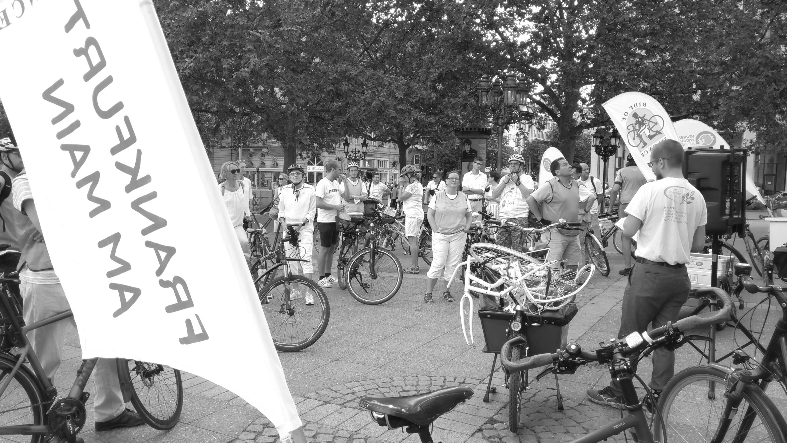 Der Ride of Silence bei der Aufstellung an der Alten Oper