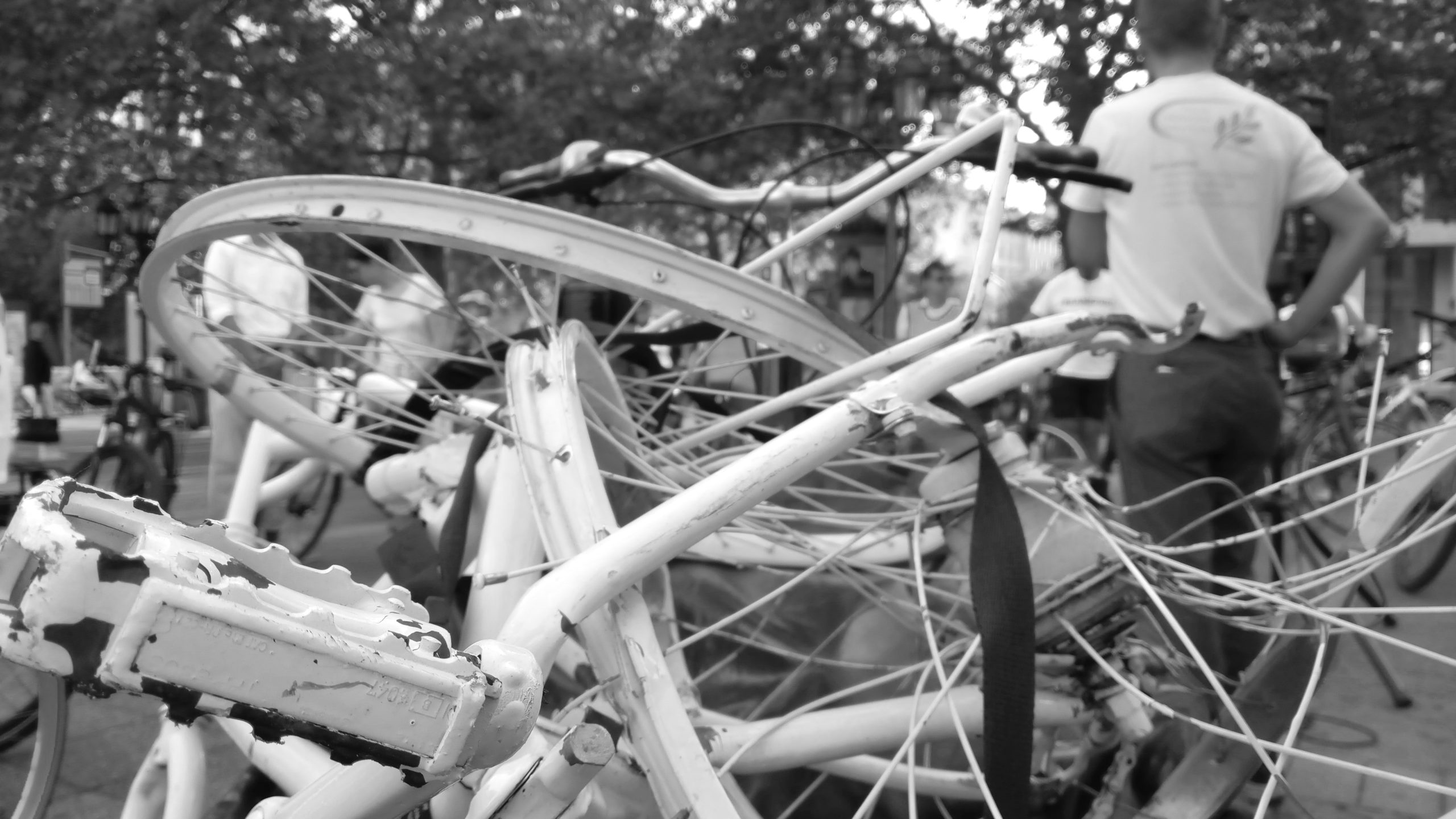 Das zerstörte erste Ghostbike von der Oskar-von-Miller-Straße